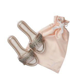 *VICTORIA'S SECRET I Fringe Rhinestone Velvet Slides champagne color.