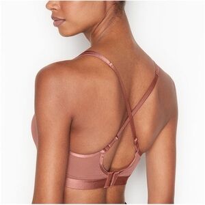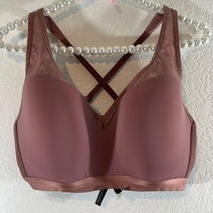 Victoria's Secret Sports Bra in Rose Brown with Mesh Detailing and Back Closure. Fits like it has underwire, but there is no actual underwire.