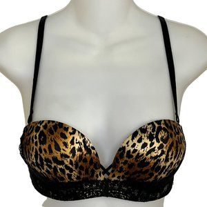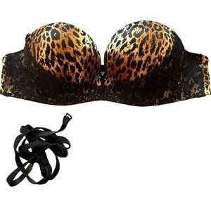 VICTORIA’S SECRET LEOPARD & LACE CONVERTIBLE STRAPLESS MIRACULOUS PADDED BRA SIZ