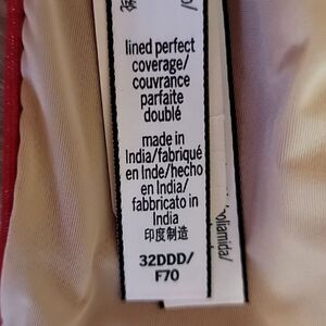 VICTORIA'S SECRET LINED PERFECT COVERAGE RED SPARKLY UNDERWIRE BRA, SIZE 32DDD