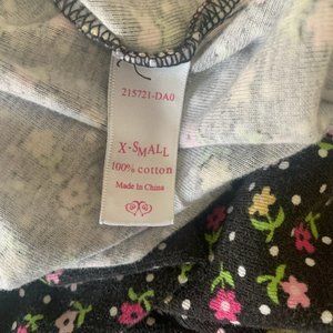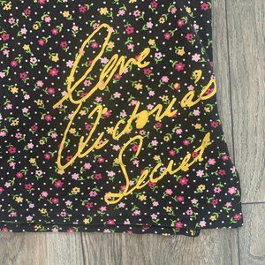 BLACK WITH YELLOW & PINK FLOWERS, PINK TRIM, LONG SLEEVE, BOTTOM SIDE SLITS, READS "LOVE VICTORIA'S SECRET" ON THE LOWER FRONT AND IS MADE OF 100% COTTON.