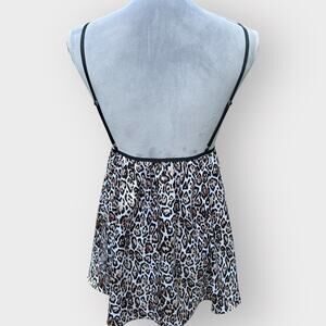This Victoria’s Secret babydoll slip is flirty, fun, and feminine. Featuring a sheer leopard print body with a black lace bust, this piece combines bold animal print with delicate lace. Adjustable straps and a flowy fit make it both comfortable and stylish — perfect as lingerie or a romantic nightwear piece.