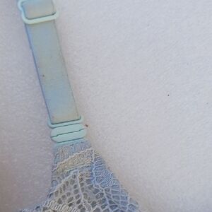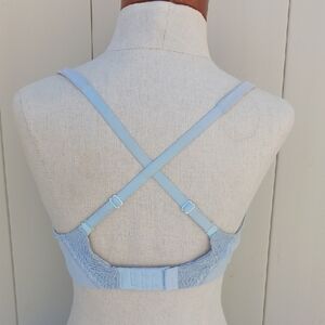 Elegant light blue bra with delicate lace trim for a comfortable and stylish fit. Can be worn as criss cross or traditional.
