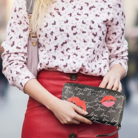 VICTORIA'S SECRET Love Kisses Zip Around Long Wallet Wristlet Lips Vegan Leather
