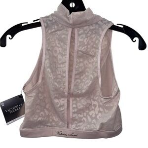 Victoria’s Secret Pink / Leopard Print Mesh Panel Mock Neck Crop Top