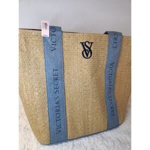 VICTORIA'S SECRET ~ New! NWT ~ Lage Straw Raffia Weekender Beach Tote w/ Denim