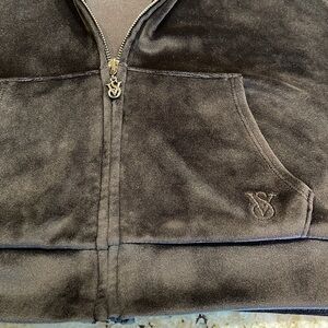 Black velour cropped zip up hoodie