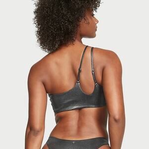 Silver foil ribbed one shoulder cut out high waist bikini set by Victoria's Secret.