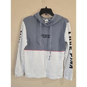 VICTORIA'S SECRET PINK CAMPUS PULLOVER HOODIE, WHITE Grey MULTI, Size Small