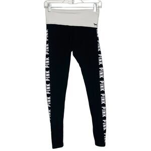 VICTORIA'S SECRET PINK Cotton High Waist Leggings Slimming Black White Size XS