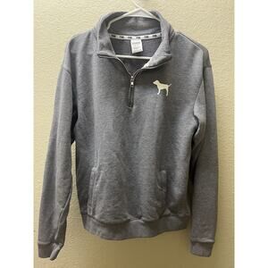 VICTORIA'S SECRET PINK DOG Sweatshirt Sz XS Pullover 1/4 Zip Long Sleeve Gray