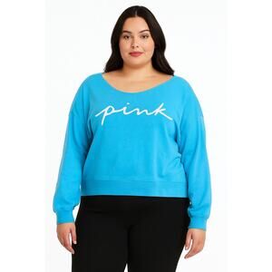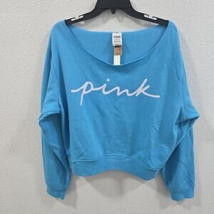 VICTORIAS SECRET PINK EVERYDAY CROPPED FLEECE OFF THE SHOULDER SWEATSHIRT XL Blu