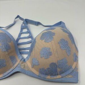 VICTORIA'S SECRET PINK HIBISCUS LACE CAGE BACK BRA light blue BEGONIA SIZE 34DD