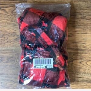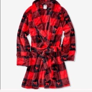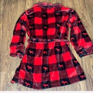 VICTORIA'S SECRET PINK Red Buffalo Plaid Dog Logo Plush Bath Robe Size M/L