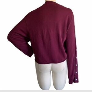 VICTORIA'S SECRET PINK SNAP SLEEVE BOYFRIEND CREW Sz L MAROON & BLACK #231D
