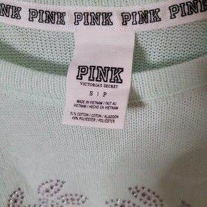 Tags: VS PINK Sweater, VS PINK, Victoria's Secret, Rhinestone, Mint Green, Long Sleeved, Round Neck, Rolled Hem, EUC, Small, Sweater, Pullover, Y2K.