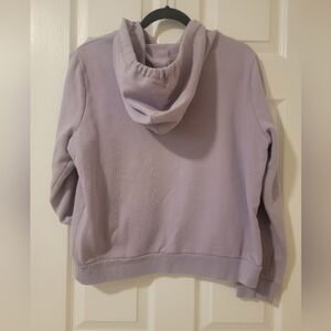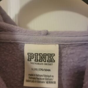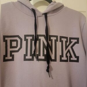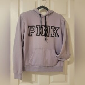 "PINK" by Victoria's Secret light purple hoodie sweatshirt (sz - lg). There is a hand pocket on the front. It is in good condition. Chest measurement across the front: 23" Measurement from shoulder to hemline: 23"