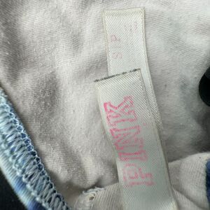 This Victoria's Secret Sports Bra in size small is a must-have for any active woman's wardrobe. The bra features a trendy tie-dye pattern in blue, perfect for adding some color to your workout attire. The strappy back adds a stylish touch while also providing extra support during intense activities. The Victoria Sport product line is known for its high-quality and durable athletic wear, and this bra is no exception. It's ideal for any sports or fitness activity, from running to yoga, or even as a comfortable and supportive everyday bra.