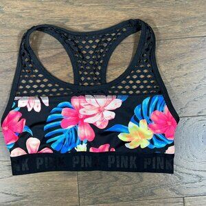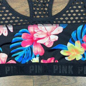 Victoria's Secret Ultimate Sports Bra. Lightweight, breathable active-wear tank in bold, tropical floral print; mesh racer back and upper-bodice; no padding or underwire; wide mesh straps for maximum comfort; logo embossed band; scoop neckline. NOTE: There is no size tag. Please make note of measurements. She tried this on, the tag was irritating so she removed it...and ended up not wearing it. 🙁 Approx 13.5" armpit to armpit, 11.75" mid-shoulder to bottom of bra.