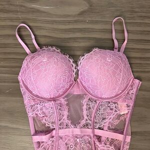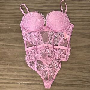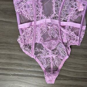 New with tags Victoria’s Secret lilac purple lace push up teddy bustier size medium. Plunge style, side cut outs, push up adds two sizes, adjustable straps. More item description in pics. Please look at all pics. Some look more pink but this is lilac/lavender slight pink in color ? So gorgeous 🤩!!