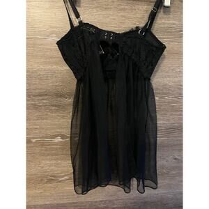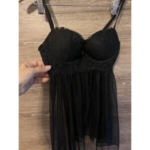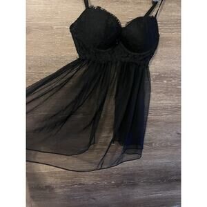VICTORIAS SECRET PUSH UP BABYDOLL BLACK LINGERIE SZ 34B SEXY SHEER Mesh BLACK