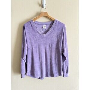 VICTORIA'S SECRET Pink Purple TERRY VARSITY BEACH OVERSIZE TOP SHIRT XS 90s Y2K