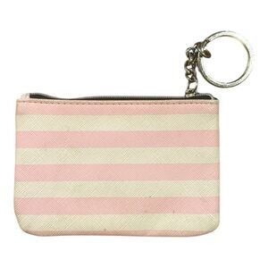 VICTORIAS SECRET Pink and White Striped Keychain Pouch