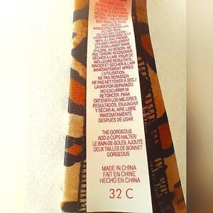 This bikini top from Victoria's Secret is SO gorgeous, well-made, and sexy! Has hooked back, adjustable tie around the neck, and the turquoise blue accents really pop! Perfect for any day at the beach or pool. 32C cup size.