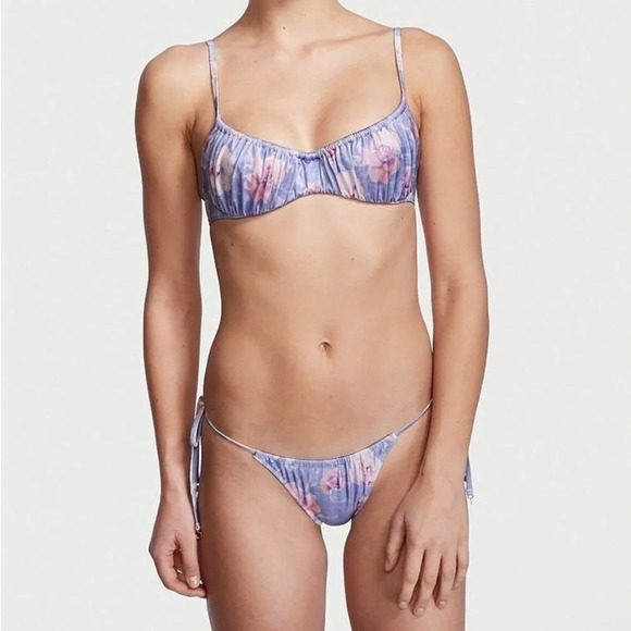VICTORIA’S SECRET RUCHED FLORAL WICKED PUSH UP WITHOUT PADDING TOP & BOTTOM SET