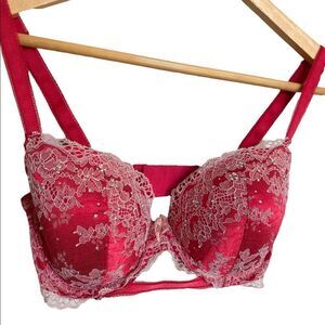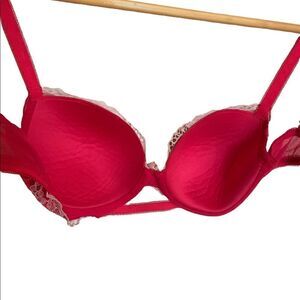 VICTORIA'S SECRET Red Lace DREAM ANGELS LINED DEMI Underwire Bra Bling Size 32DD