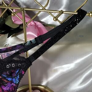 VICTORIA'S SECRET Rinstones Black Floral String Thong 1916