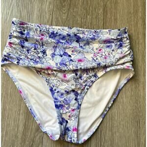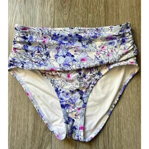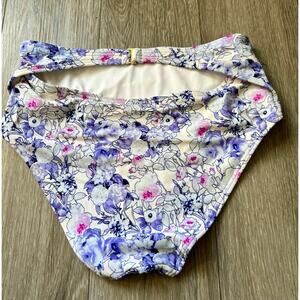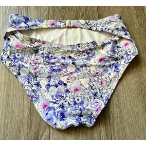 Victoria’s Secret. Size medium. Excellent-like new condition. The classic high waist swim bottom. Stunning bottom extra slimming coverage on waist. Fun peekaboo back opening. Navy white, purple and pink floral rose design.