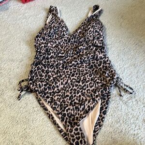 Victoria Secret leopard print one piece ruched plunge front
