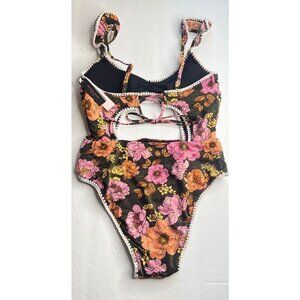 VICTORIA'S SECRET SWIM Ruffle One-Piece cheeky Swimsuit w/ Crochet cut out L