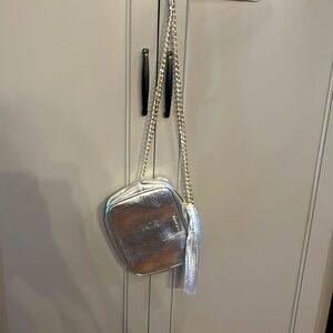 VICTORIA'S SECRET Silver Metallic Crossbody Bag Gold Chain Strap Camera Purse