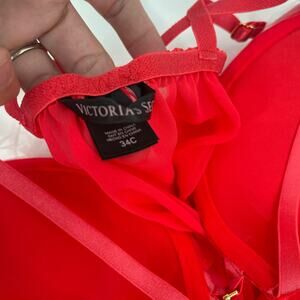 VICTORIA'S SECRET Size 34C Red Lingerie Teddy Babydoll Sheer Lace Intimates Push Up, Sexy, Valentines Day, Romantic