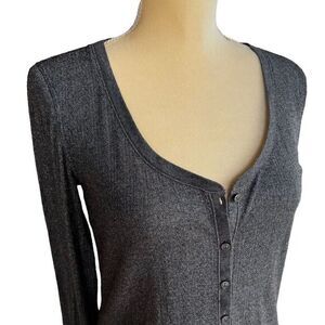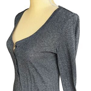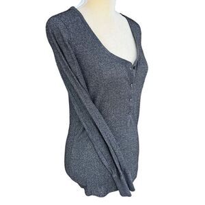 VICTORIA'S SECRET Sparkly Grey Size M Long Sleeve Buttoned Sleepshirt Scoop Neck