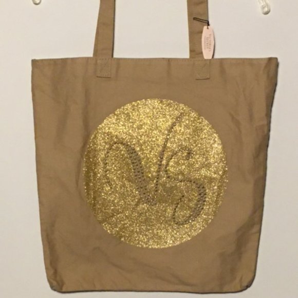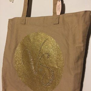 VICTORIA'S SECRET Tan and Gold Canvas Tote Bag NWT