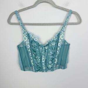 VICTORIA’S SECRET | Teal Green Floral Lace Up Look Corset Top Women’s Size M