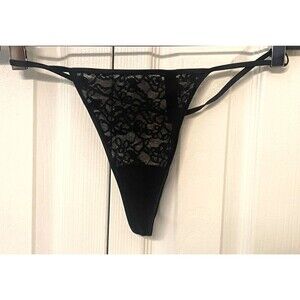 Three piece nightie set by Victoria's Secret. Black lace nighty (the lacie), is fully sheer with lace upper and chiffon skirt. Include the thong panties. Women's size Large. Also includes the short satin kimono robe with tie belt at the waist. Size M/L.