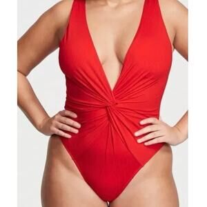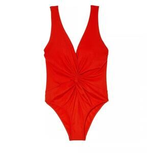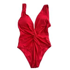 VICTORIA’S SECRET Twist Plunge One-Piece Solid Red Swimsuit Beach Summer Size M