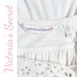 VICTORIA’S SECRET VINTAGE Y2K COTTON WHITE EYELET LACE BABYDOLL SLIP DRESS, M