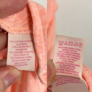 ◇ size medium. Neon coral pink ish orange ish burnout ish fabric. Crochet trim on neckline. Gathered twist knot front detail (hem is higher near gathered detail / high low hi-lo hem). Lightweight and semi sheer. Scoop neck and sleeveless. Racerback. Long longer tunic length. Tank top shirt blouse top and/or swimsuit coverup swim coverup bathing suit coverup