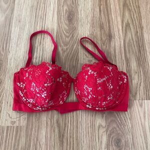 VICTORIA’S SECRET Very Sexy Red Crochet Lined Balconet Bra SIZE 32D