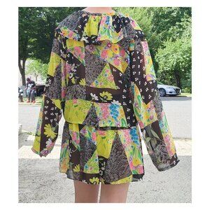 VICTORIA'S SECRET Vintage Floral Long Sleeve Chiffon Lace Up Top & Shorts Pajama Set