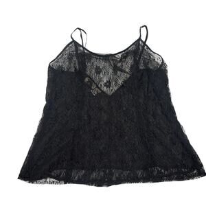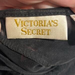 VICTORIAS SECRET Nightie SEXY Black Sheer Lace Chemise Lingerie Plunge Top