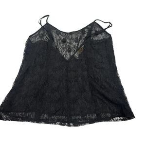 VICTORIAS SECRET Vintage GOLD LABEL SEXY Black Sheer Lace Chemise Top SIZE LARGE