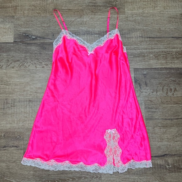 VICTORIA’S SECRET Vintage Y2K Hit Pink Lacey Slip Dress Mini Dress Size Large