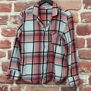 VICTORIA'S SECRET WOMEN'S PINK & WHITE MULTICOLOR PLAID BUTTON FRONT BLOUSE