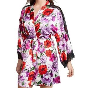 VICTORIA'S SECRET White Summer Floral Satin Kimono Lace Inset Robe Lingerie 3J15
